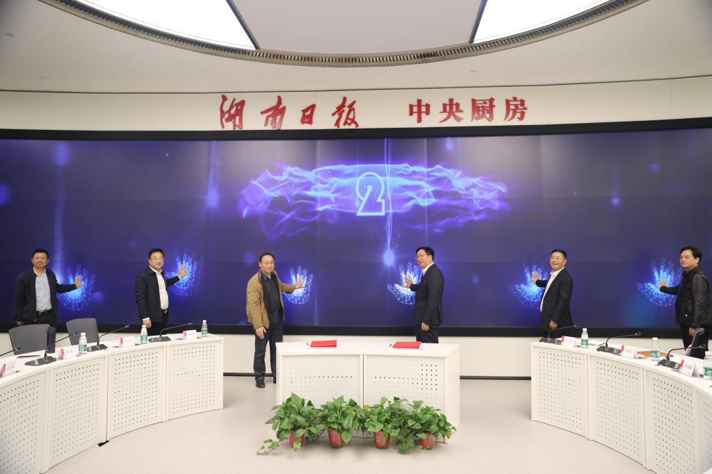 学习期间,学校与湖南日报社签署了战略合作协议,双方签约后,将就学校融媒体中心建设展开全面合作。