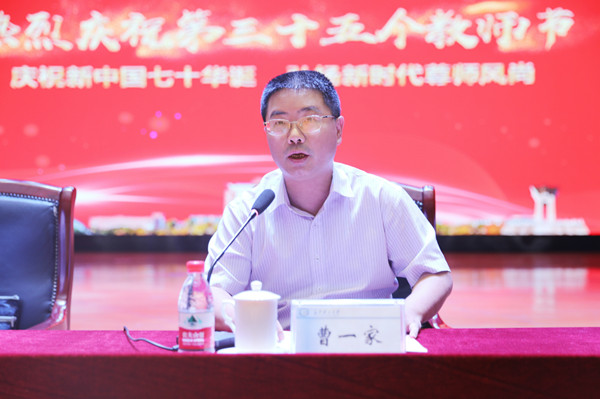 付宏渊指出,学校建设“双一流”、跻身全国百强的底气与自信,源于新时代党和国家对高等教育的重视,源于学校60多年来的办学成就与文化,源于学校拥有一支师德高尚、业务精湛、开拓创新的教师队伍。他认为,要弘扬新时代尊师风尚,就要尊重教师主体地位,营造尊师重教浓厚氛围;要努力改善教学科研环境,激发教师从教热情;要持续加强师资队伍建设,提高教书育人水平。他希望,全校教职工不忘育人初心,严守师德底线,勇于改革创新,始终坚定百强大学目标信心,致力于内涵发展,全面提高人才培养质量,以优异的成绩向新中国成立70周年献礼。