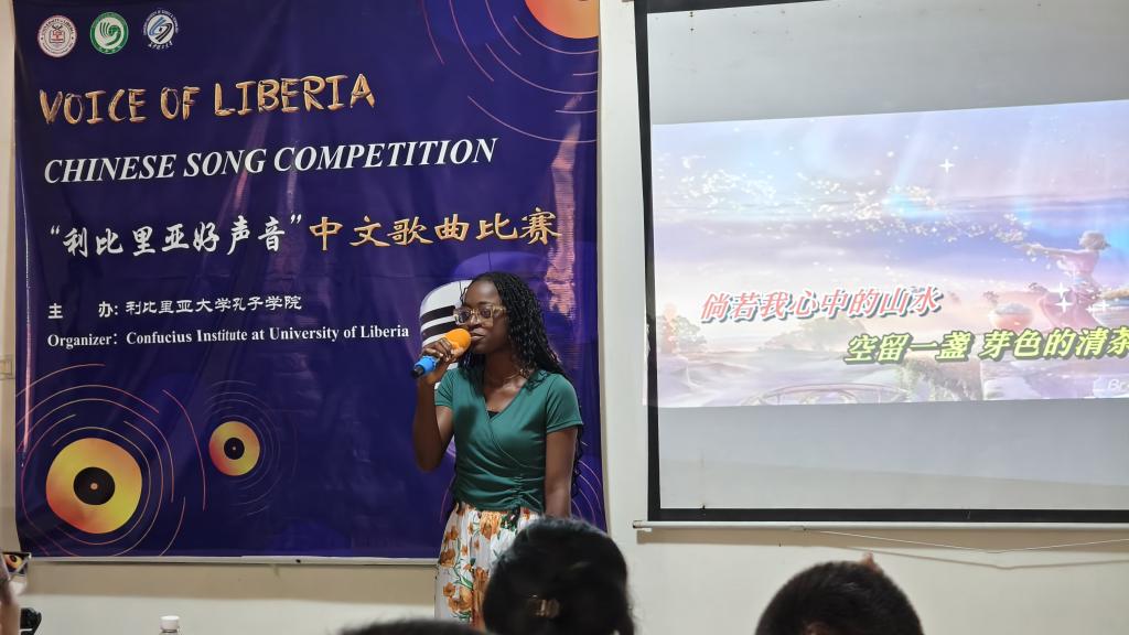 十位决赛选手依次登台,演绎了包括经典民歌、流行歌曲在内的多首中文作品。有的演唱深情婉转,有的演绎活力四射,更有选手将利比里亚本土音乐元素与中文歌词巧妙融合,展现出跨文化创作的独特魅力。他们不仅用歌声打动了观众,也成为中利文化交流的生动使者。