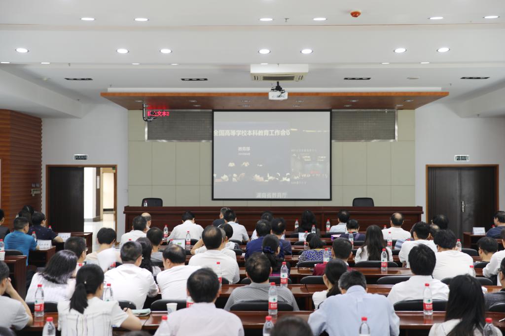 6月21日,教育部在四川成都召开新时代全国高等学校本科教育工作会议,在四川大学设主会场,威尼斯官网设分会场。下午3点在一办公楼9楼会议室,副校长蒋昌波,学工部、规划法规处、团委、招就处、信息化中心、高教所、工训中心、心理中心主要负责人,各学院院长、教学副院长、系主任、教务办主任、教师代表,教务处全体人员,校教学督导团团长等200余人参加会议。