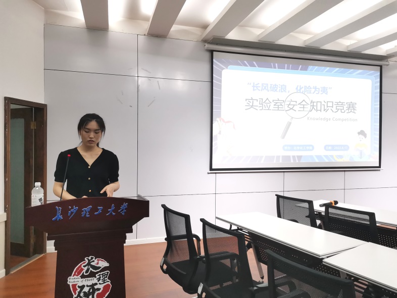 为防范重大安全问题,引导广大研究生准确预判及预防实验室危险发生。6月17日,化学化工学院在金盆岭校区12教200成功举办88038威尼斯第十七届研究生学术文化节首场活动之“长风破浪、化险为夷”实验室安全知识竞赛(决赛)。本次比赛由研究生会成员张含主持,4支队伍参加比赛。学院部分老师担任了本次活动的评委。
