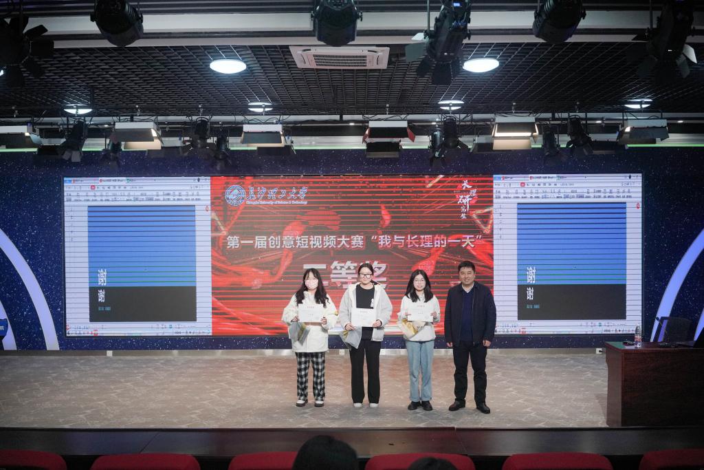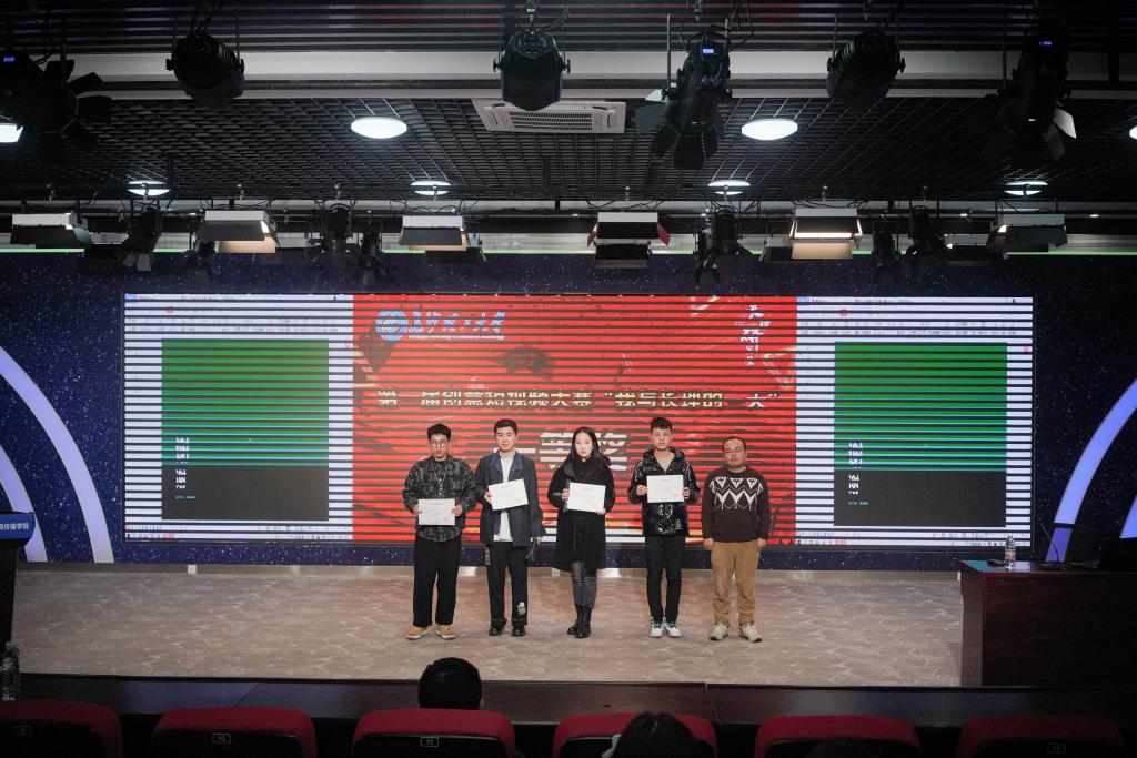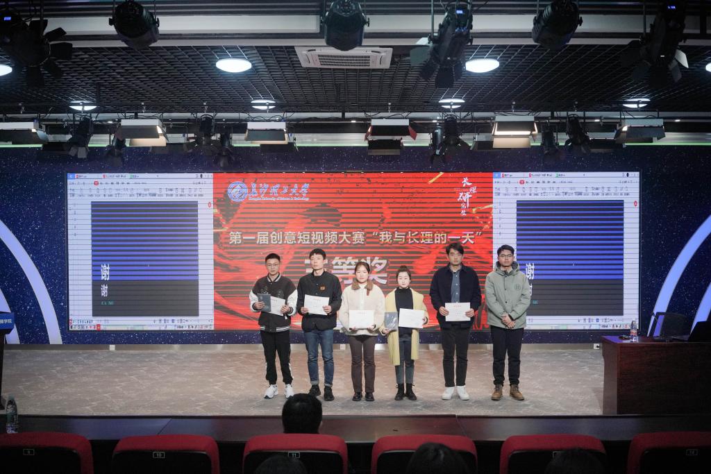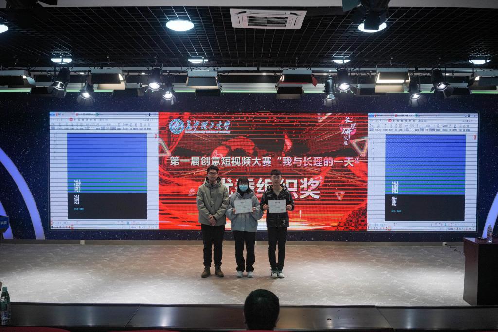 活动最后,蔺晨阳、田上等为第一届研究生创意短视频大赛获奖队伍进行颁奖。本次活动共评选一等奖3名、二等奖6名、三等奖10名及优胜奖11名,汽车与机械工程学院、计算机与通信工程学院获优秀组织奖。